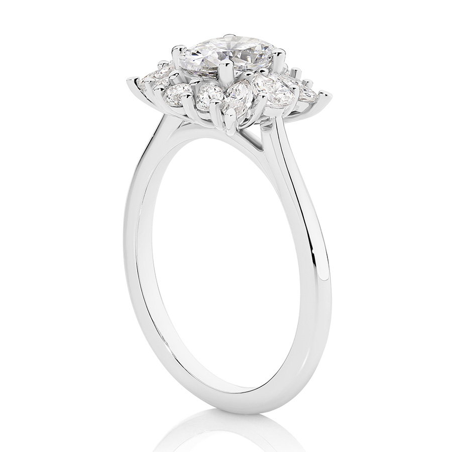 0.75ct Centre Stone Waratah Oval Engagement Ring with Lab grown diamonds.