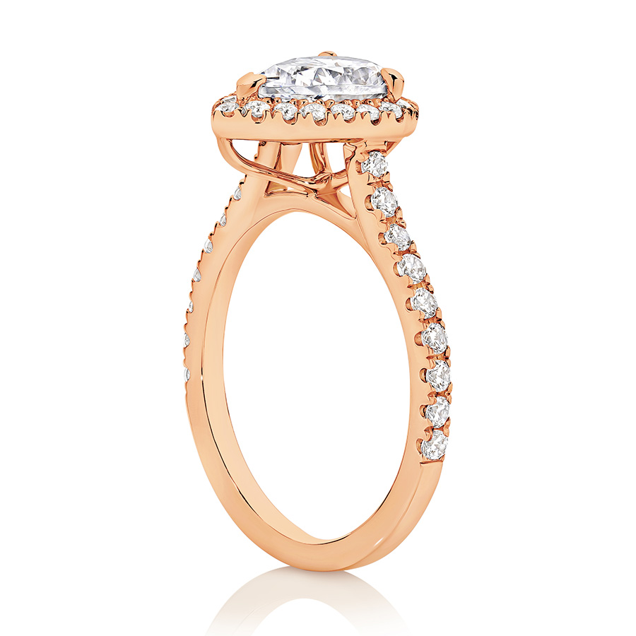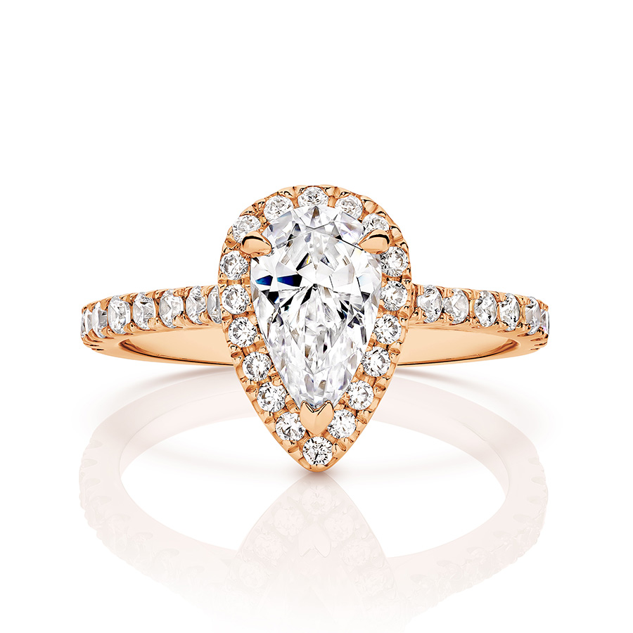 1.0 ct Centre Stone Halo Pear Cut with a Diamond band . Lab grown diamonds.