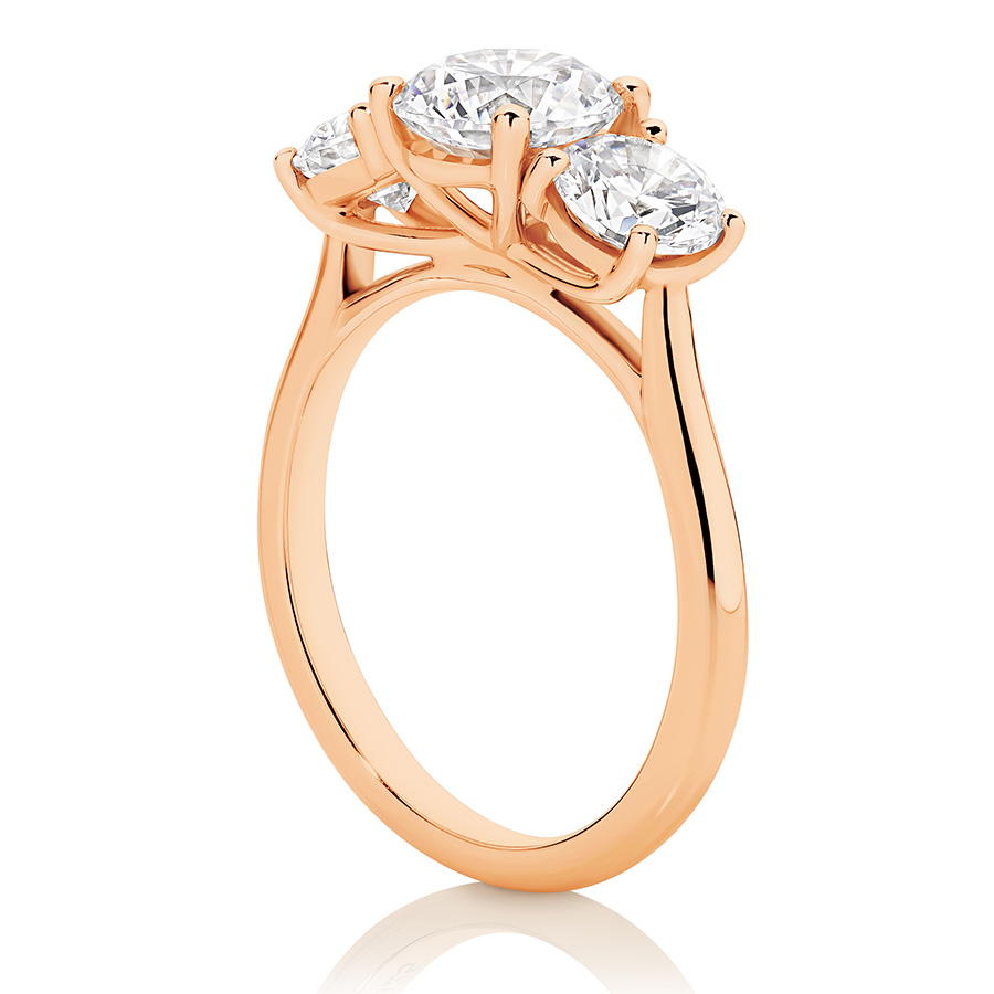 1.0ct Centre Stone Three Stone Ring with Round shaped side 0.40~0.50ct Stones with Lab grown diamonds.