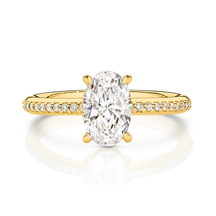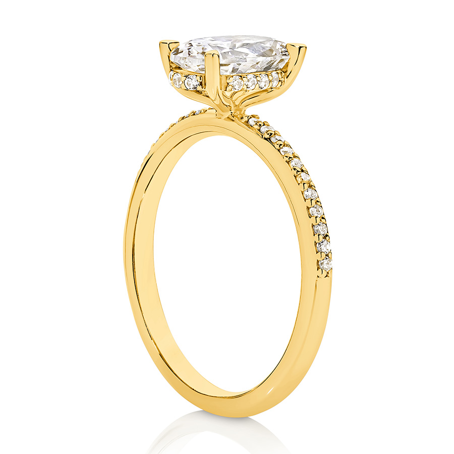 1.1ct Centre Stone Oval Hidden Halo Diamond on Band. Lab grown diamonds.