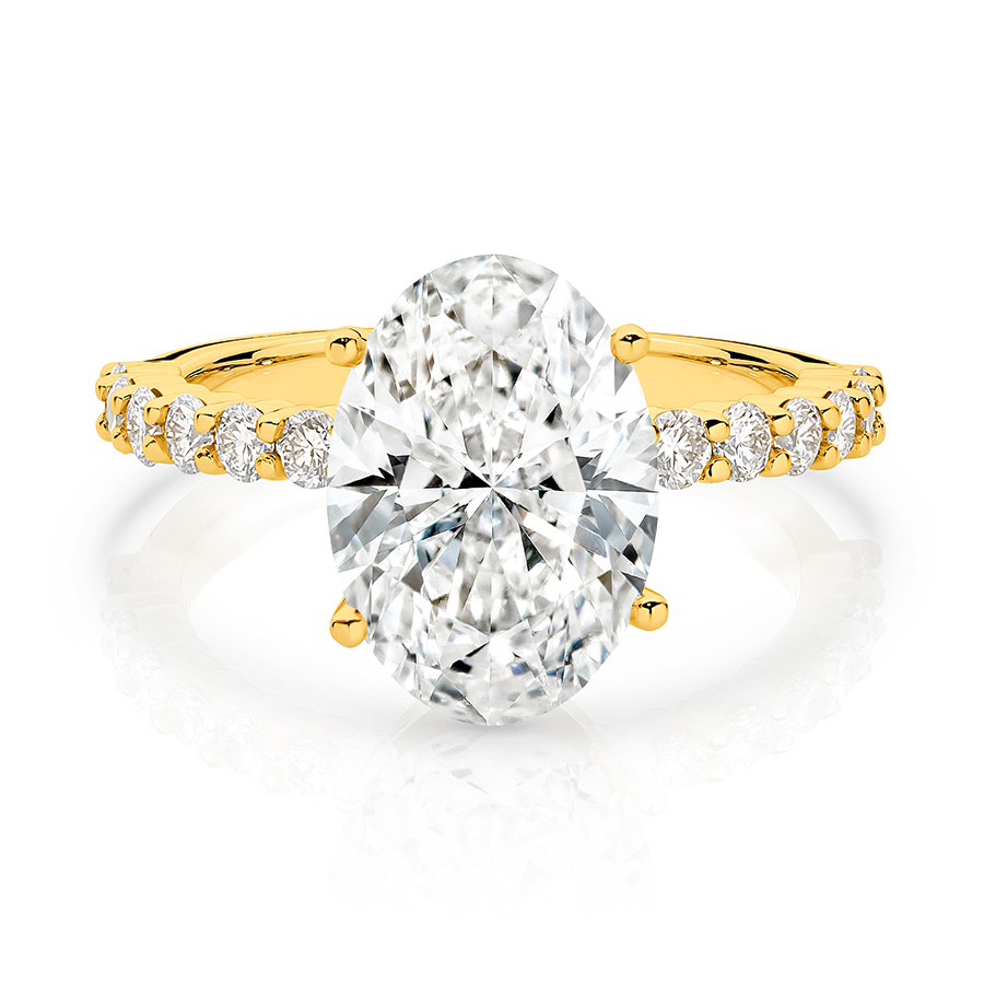 2.0ct Centre Stone Oval Cut Round Common Claw with Diamond Band. Lab grown diamonds.