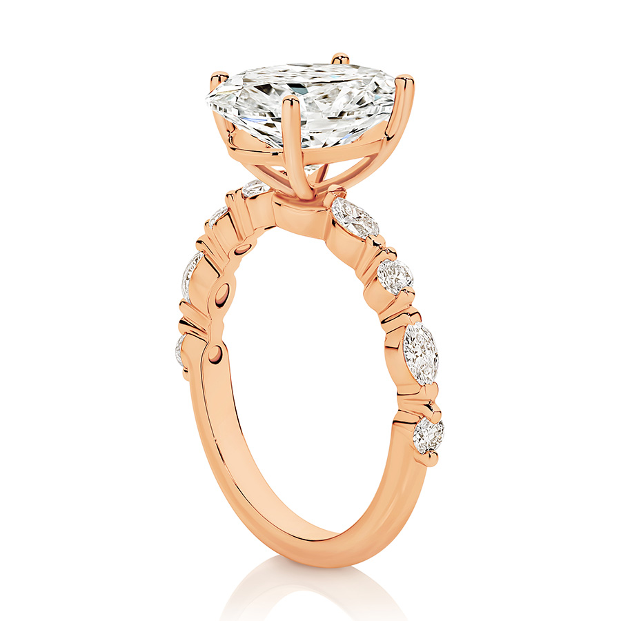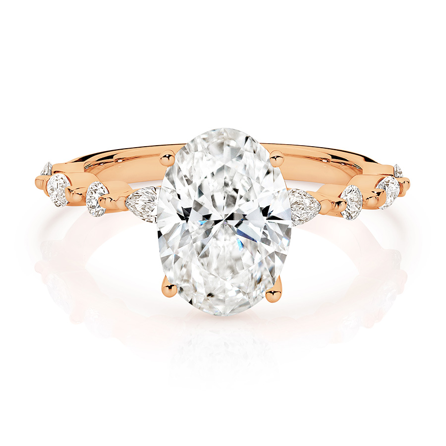 2.0ct Centre Stone Oval Engagement ring with round and Marquise shaped side stones. Lab Grown Diamonds.