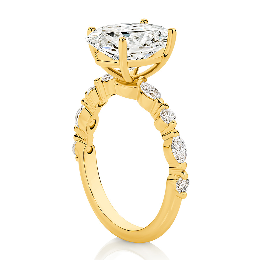 2.0ct Centre Stone Oval Engagement ring with round and Marquise shaped side stones. Lab Grown.